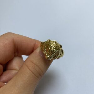 Anello a forma di leone in oro giallo 18 carati.