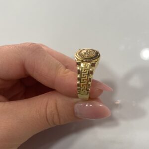 Anello da Uomo tondo modello Versace,in oro giallo 18 carati,con greca di versace ai lati