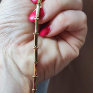 Il bracciale è in oro 18K. Ha bandiere sulla parte superiore, mentre sotto le piastrine sono lisce. La lunghezza del bracciale è 20,5 cm, la larghezza è 4mm.