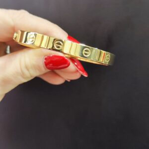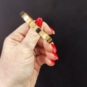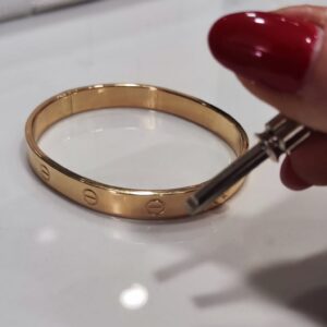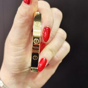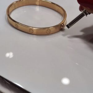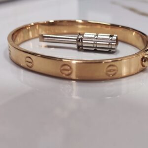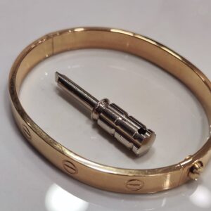Bracciale rigido in oro 18K con chiusura a vite, dotato di cacciavite originale.
