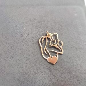 Ciondolo pendente a forma di Donna che tiene in braccio il suo bambino in oro 18K.