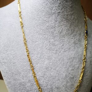 Collana Modello Rudy in oro giallo 18K, lunga 50 cm e spessa circa 5 mm. Il peso è circa 6,80 grammi. Chiusura di sicurezza a molla in oro giallo 18K, con pietra blu.