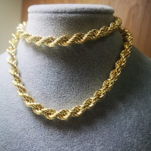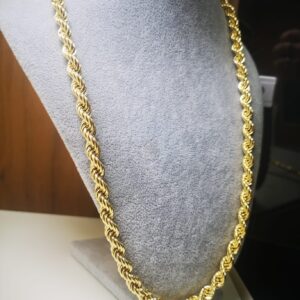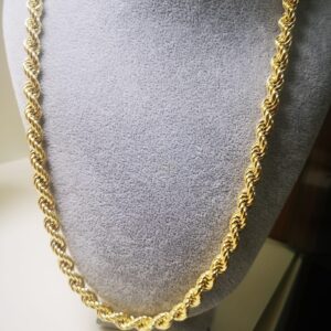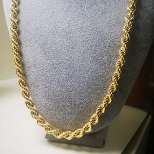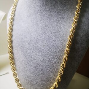 Collana a Corda in oro giallo 18K, lunghezza 60 cm, spessore circa 8mm. Chiusura con gancio di sicurezza antiapertura accidentale. Il peso è circa 24,50 grammi.