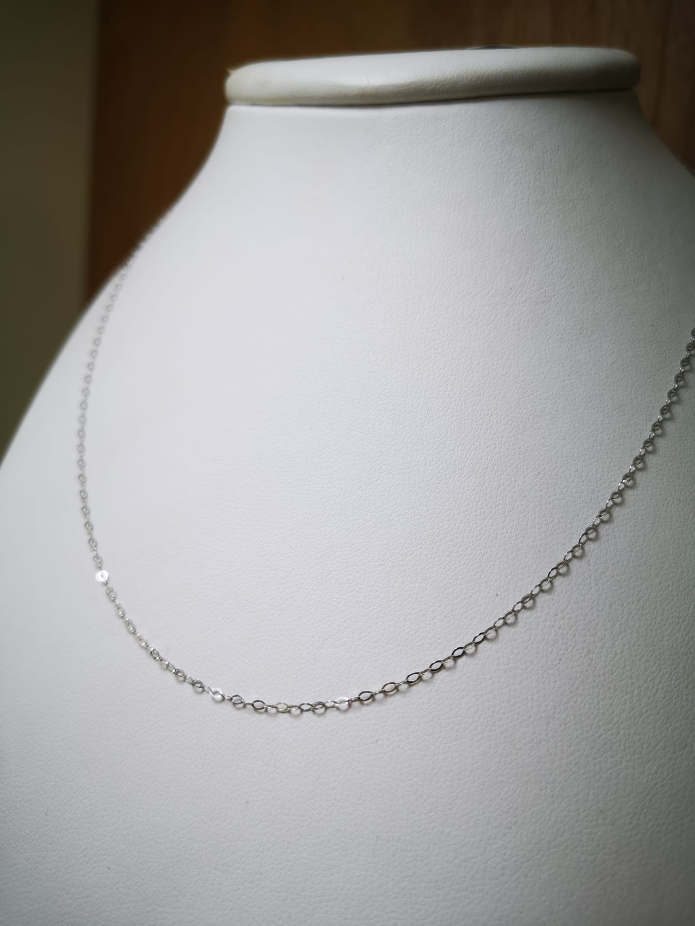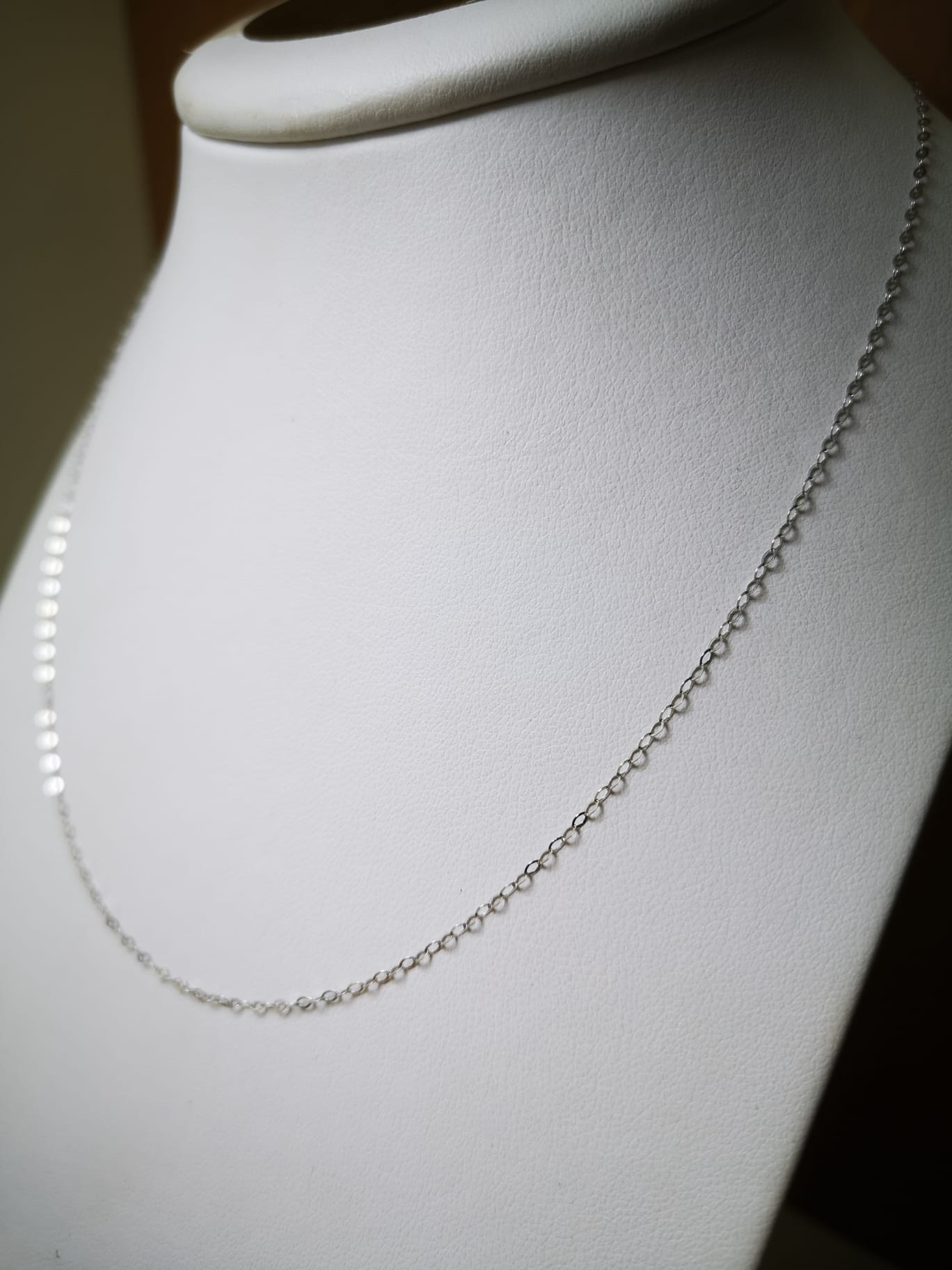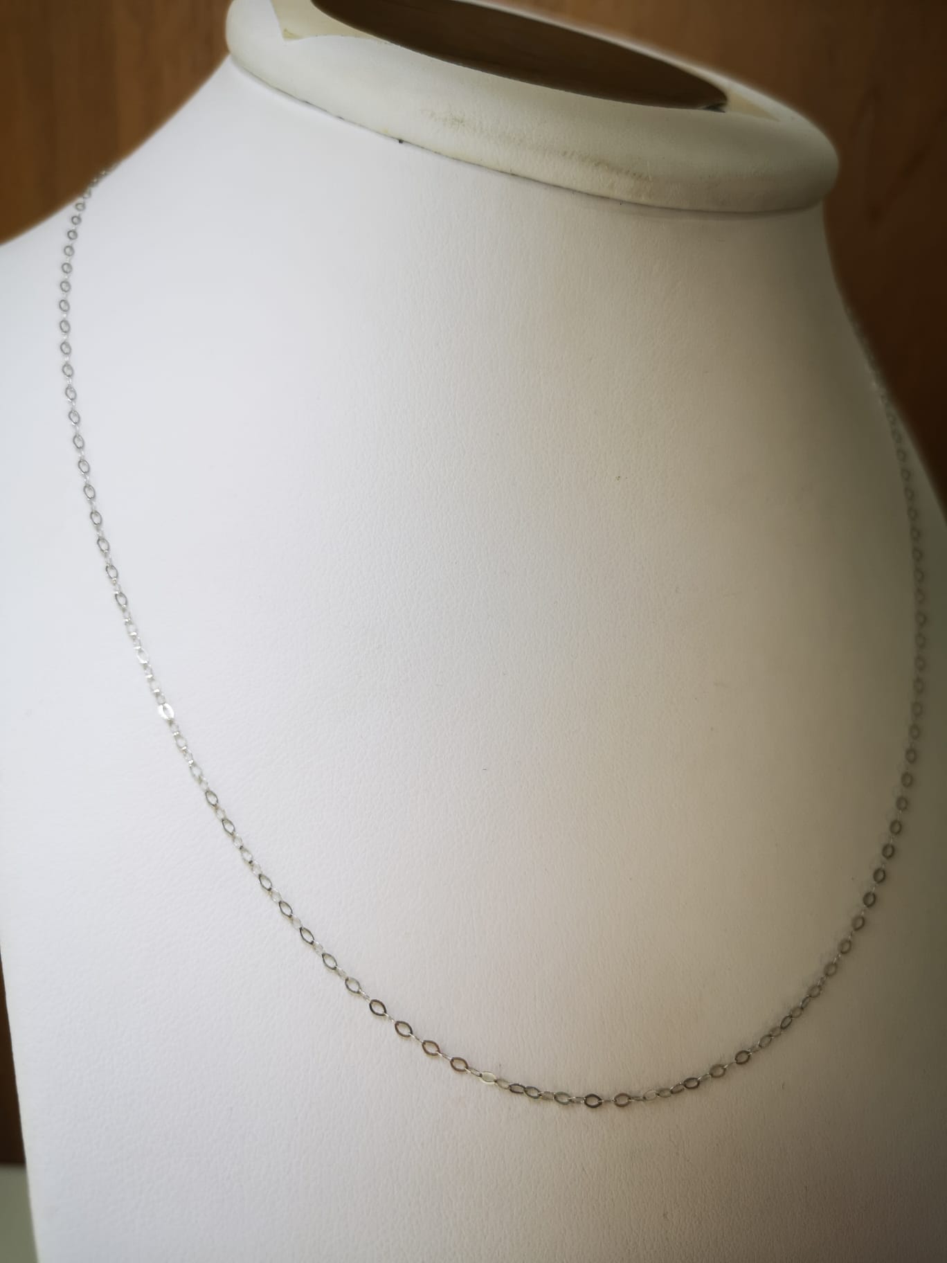 Collana Ovalina in oro bianco 18K lunga 45 cm, peso circa 1 grammo.