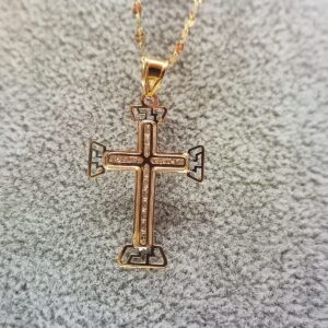 Completo Collana Specchiatina con Crocifisso zirconato in Oro 18K . Lunghezza collana 45 cm, il peso totale è circa 1.70 grammi.