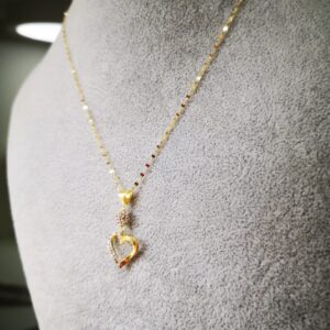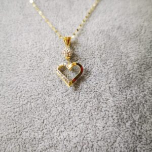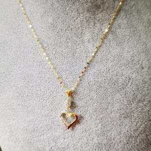 Specchiatina con pendente cuore zirconato in oro gialo 18K. La collana specchiatina è 45 cm.