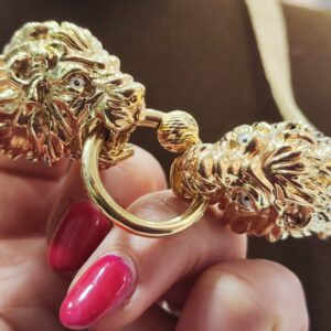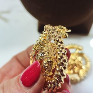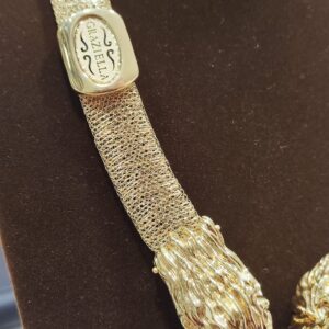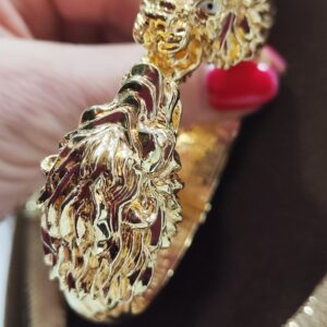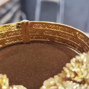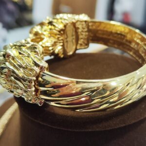 Il bracciale è rigido con chiusura a molla, la larghezza internaè circa 6,5 cm. Il peso è circa 22,40 grammi.
