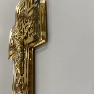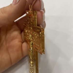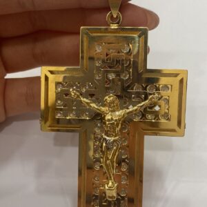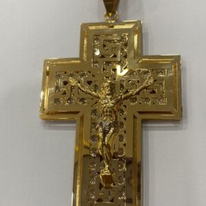 Croce doppia lastra in oro giallo 18 carati.