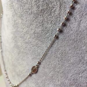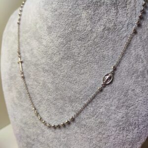 Collana Rosario in argento 925 con grani lisci dello spessore di circa 1mm. La lunghezza è 45 cm. Il peso è circa 4,50 grammi.